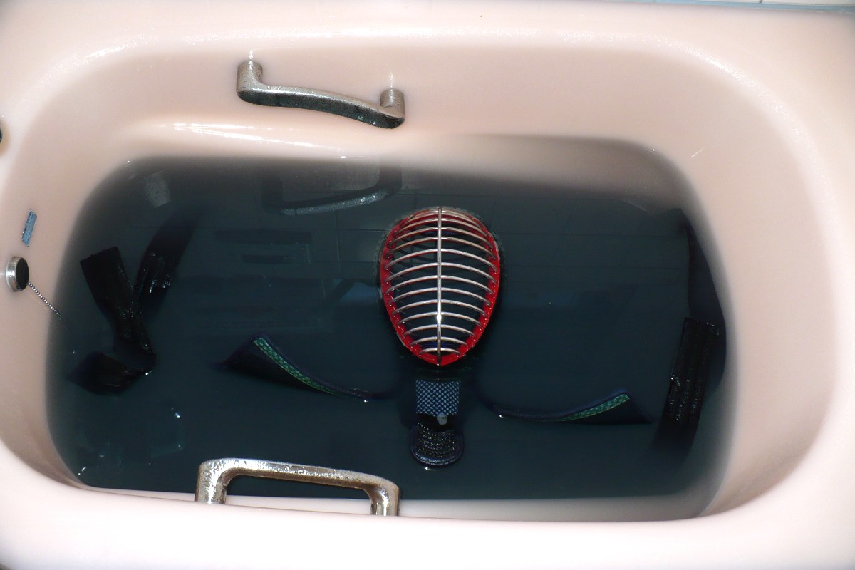 胴は竹胴なのでやめておくとして、それ以外の面・小手・垂を洗うことにします。