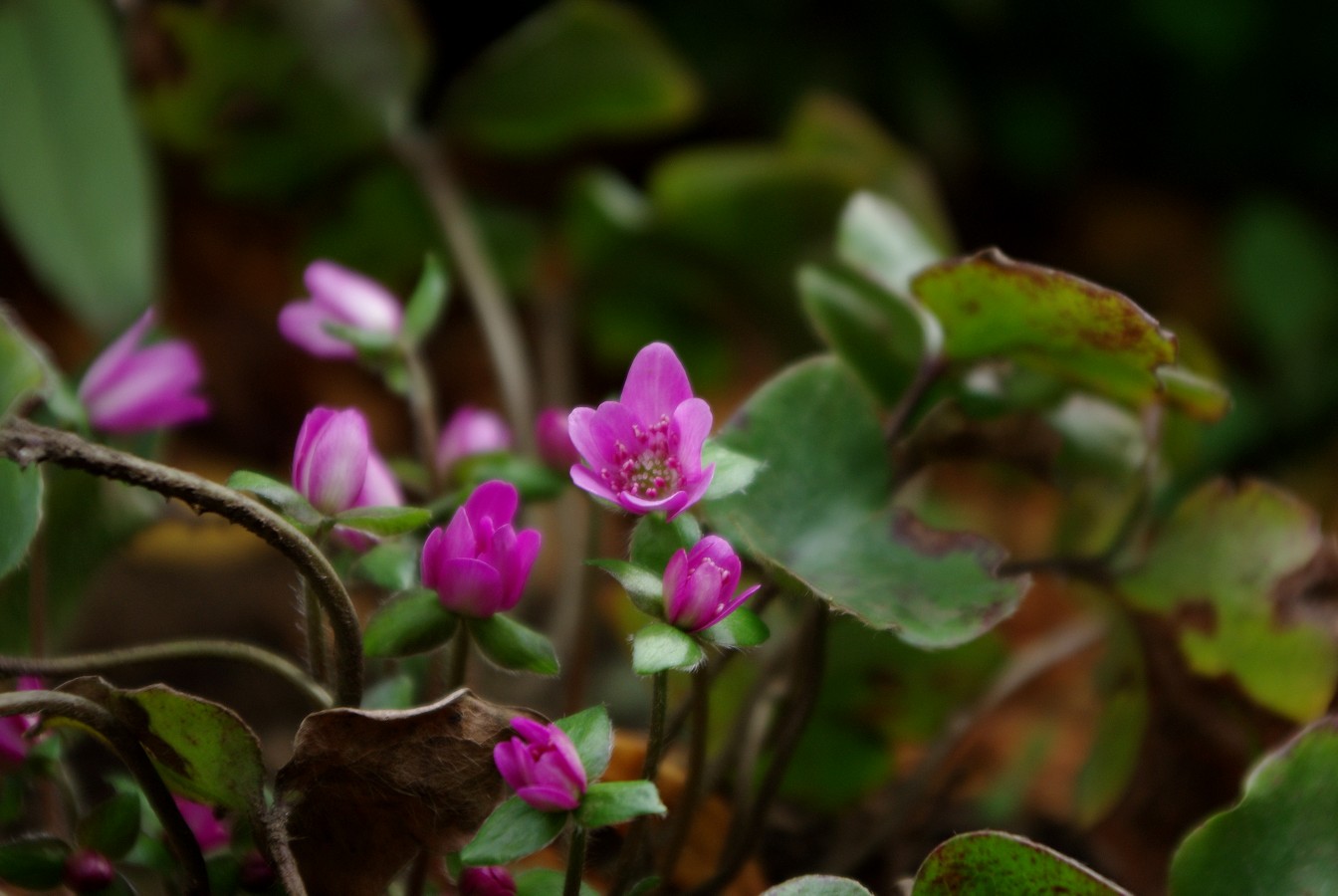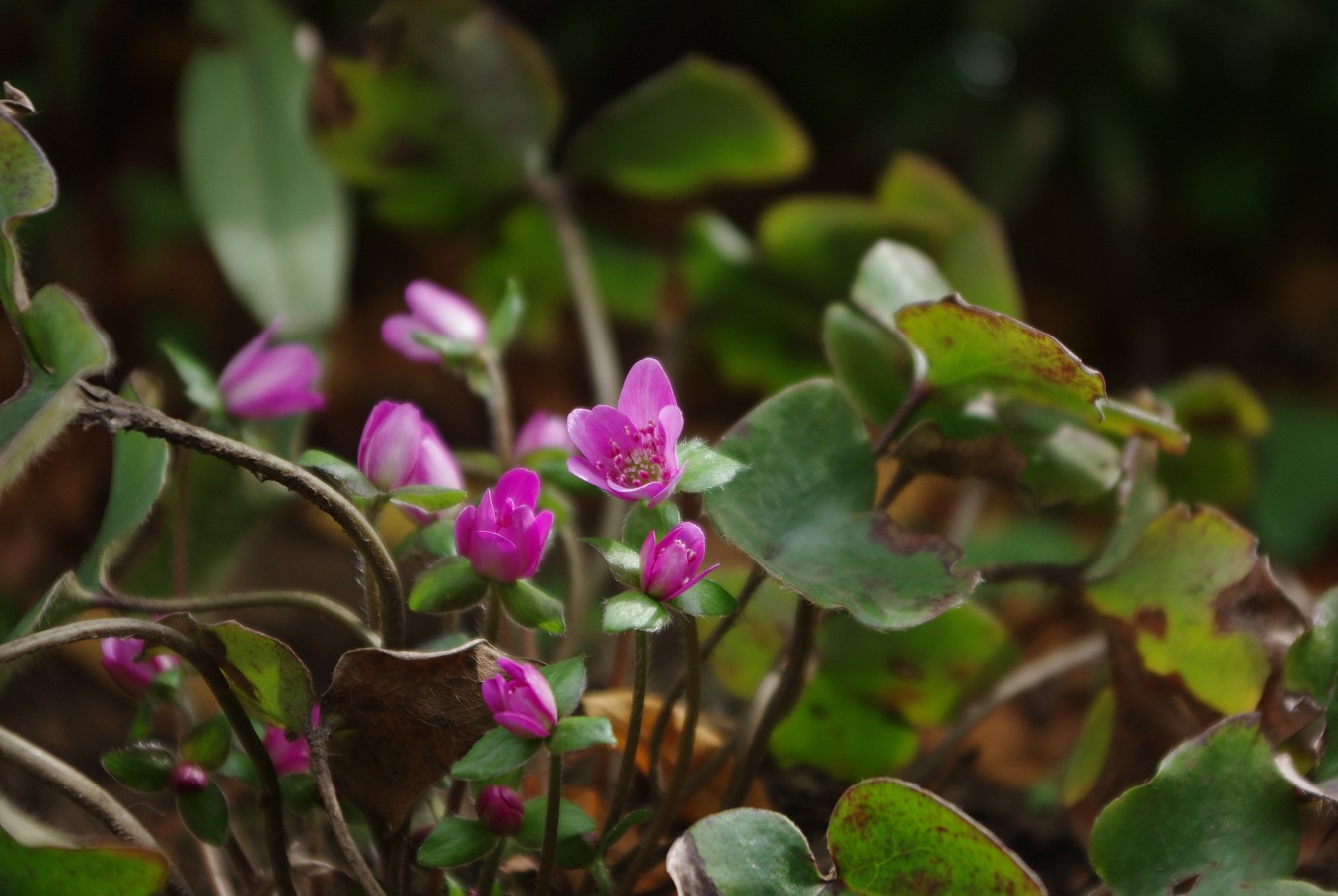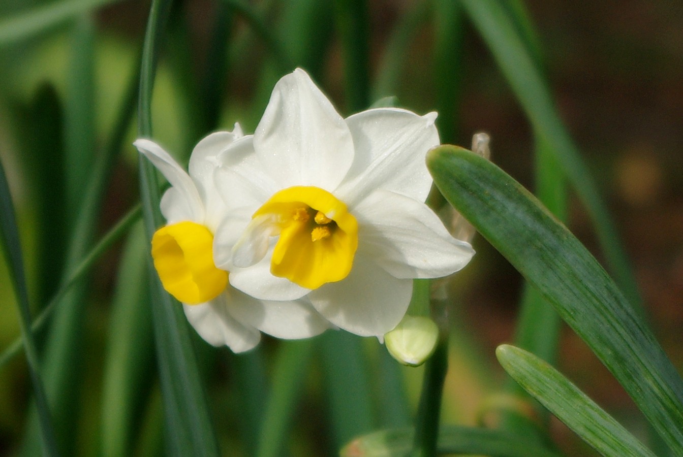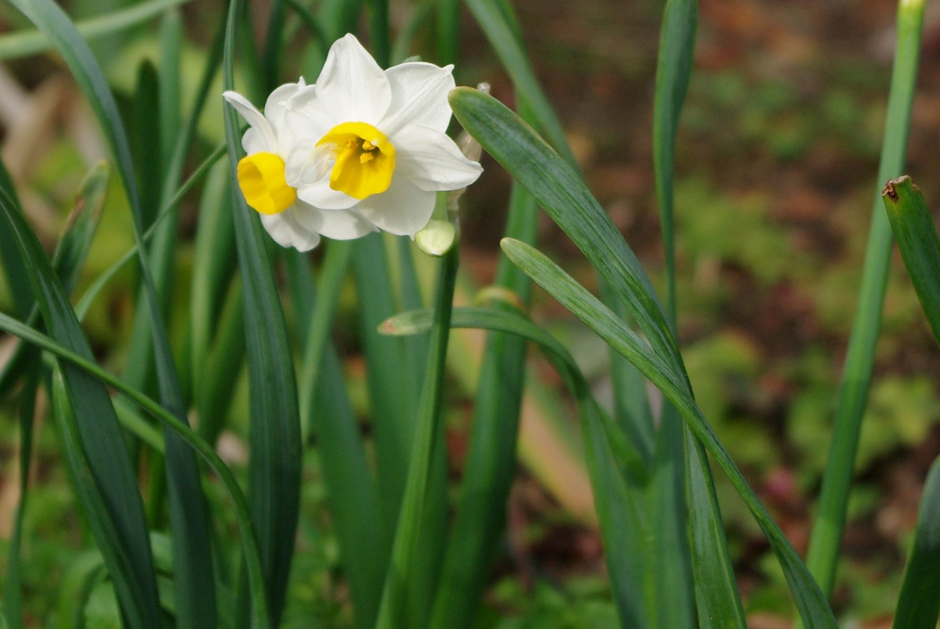 寒くても背筋をピンと伸ばし、前を向いて花を咲かせる水仙と、暖かくなってきたことを自分で感じ取り、朝夕の急激な温度変化にも負けない雪割草。